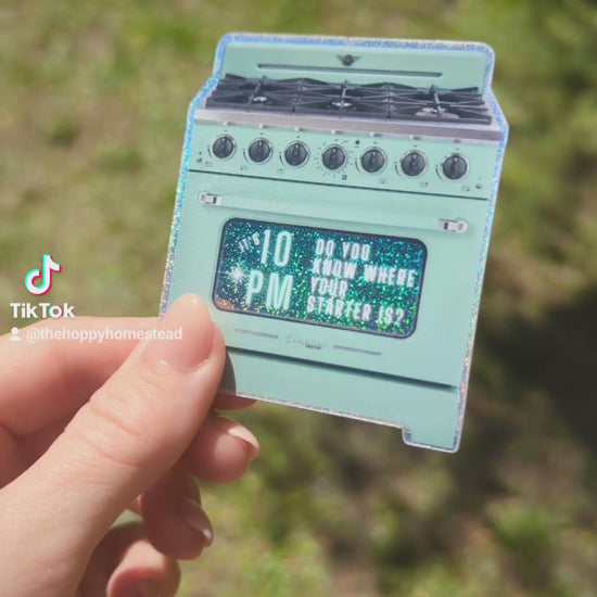 Almost all of us have suffered through the loss of our sourdough starter at the hands of our oven. This sticker is a fun little reminder to check the oven before turning it on to preheat!